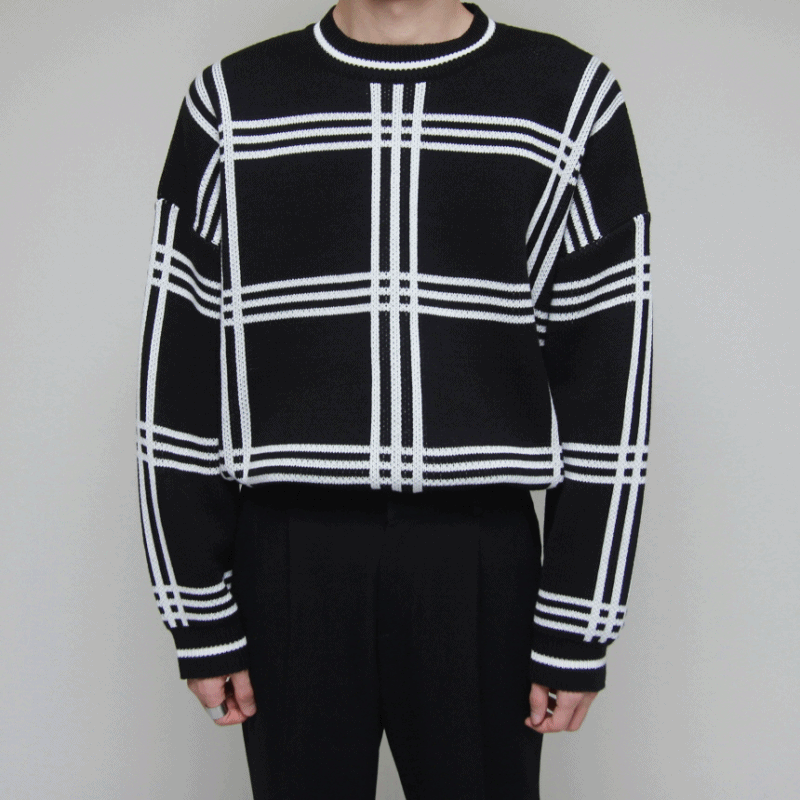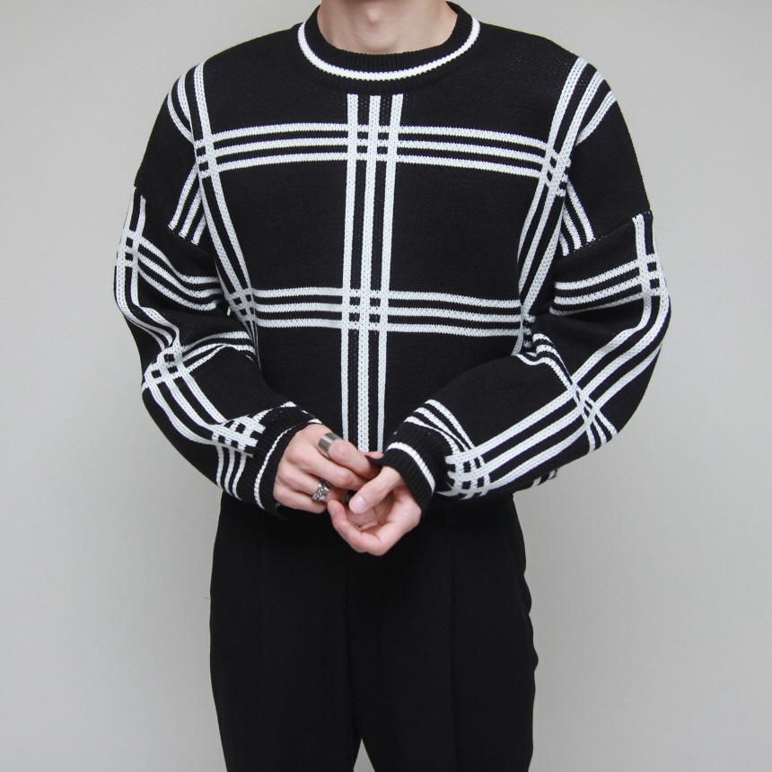 남자 체크 니트이면서 오버핏한 실루엣이 돋보이는 니트로