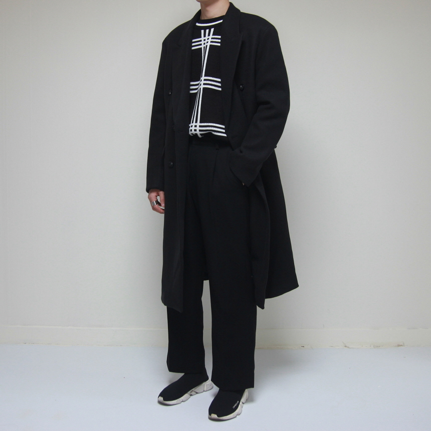 확실히 블랙 앤 화이트 컬러의 니트이다 보니 검은색 남자 롱 코트와도 잘 어울리는 디자인이었다.